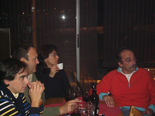 O objectivo principal do evento era,o convivio entre amantes do Vinho.De seguida identificar as regiões dos vinhos que se beberam durante a noite,enquanto se degustavam 4 variedades de Queijos Portugueses,Chouriço Assado e Azeitonas temperadas....Eram 3 vinhos,correspondentes a 3 regiões -Esteva(Casa Ferreirinha)»»Douro;Crescendo(Altas Quintas)»»Alentejo e 3 Castas(Fiuza)»»Ribatejo.
